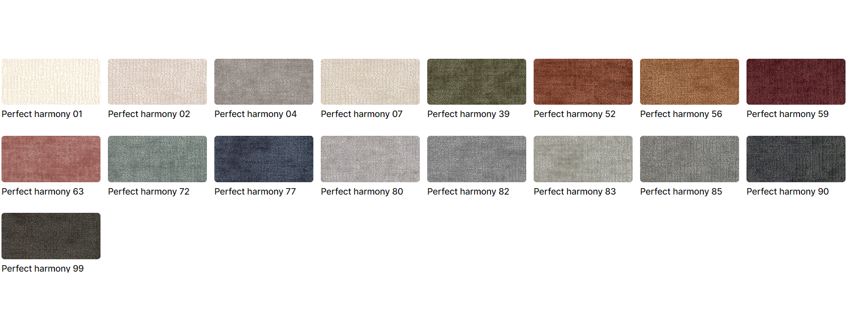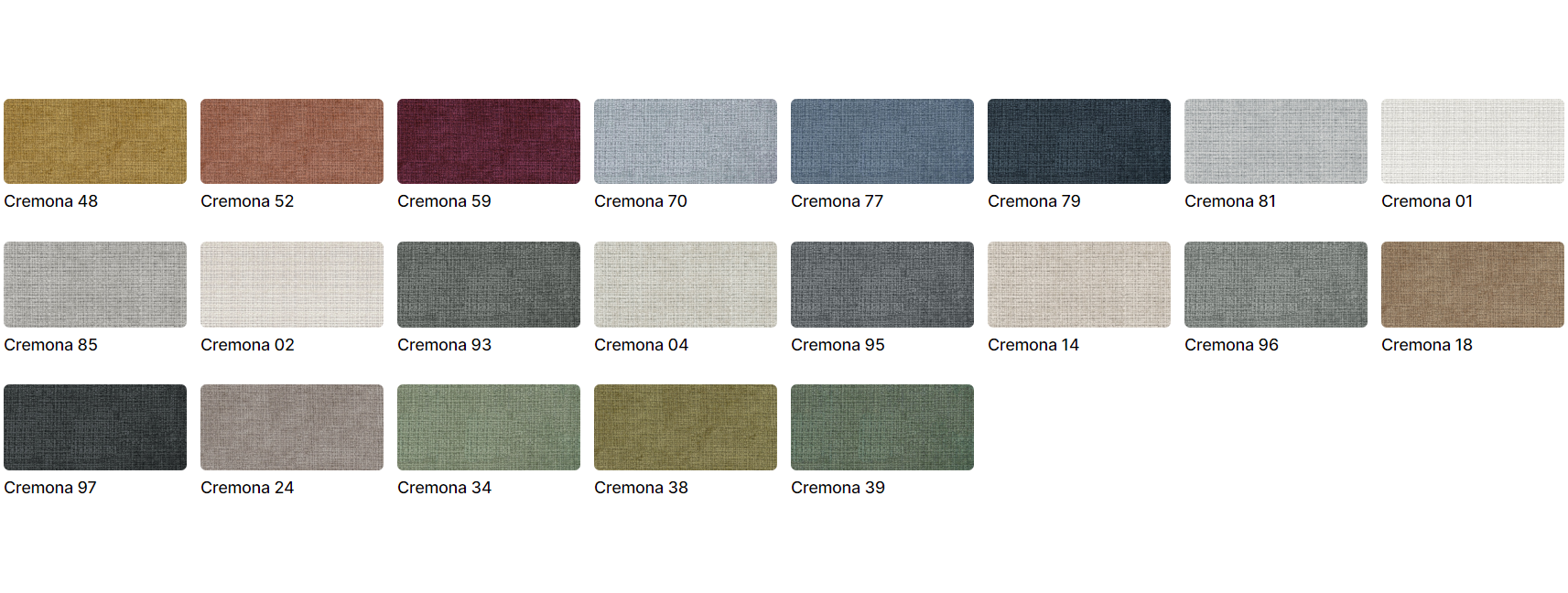 Možnosť výberu farebného prevedenia zo vzorkovníka látok: Perfekt Harmony,  Cremona,  Castel  a  Aragon. Pri objednávke prosím uveďte do poznámky typ látky.