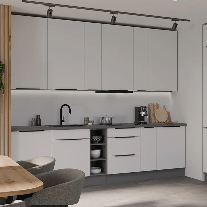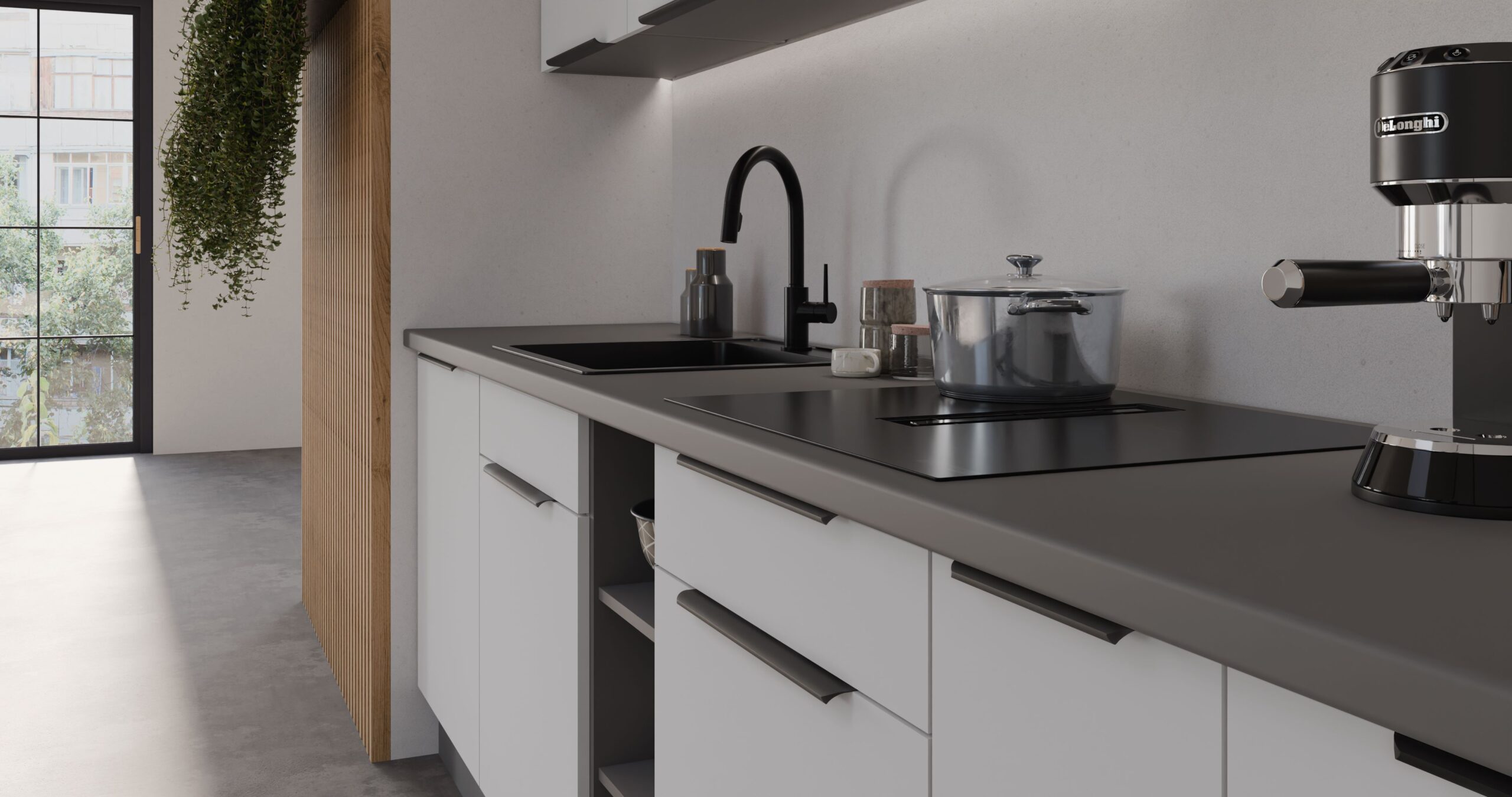 Sektorová kuchynská linka ARIA 300 v atraktívnom farebnom prevedení crystal white / antracit je minimalistická a moderná, zároveň je však elegantná a nadčasová. Kombinácia dekoru antracit sivá / crystal white biela pôsobí príjemne a útulne. Kuchynská linka je sektorová, je teda možné si vybrať z veľkého množstva skriniek a vyskladať kuchyňu podľa Vašich predstáv s požadovaným rozmerom. Pracovná doska nie je v cene v kuchynskej linky. Pracovnú dosku je možné doobjednať v dekore ladiacom ku korpusu kuchynskej linky Aria. Celkový moderný dizajn umocňujú úchytky v chrómovom dekore, ktoré sú v cene kuchynskej linky. Kuchynská linka je sektorová, je teda možné si vybrať z veľkého množstva skriniek a vyskladať kuchyňu podľa Vašich predstáv s požadovaným rozmerom.