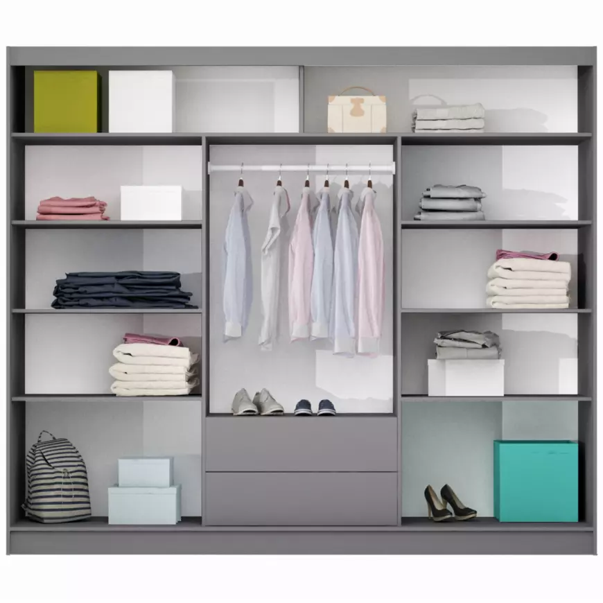 Táto moderná skriňa spája dynamický vzhľad s precíznym spracovaním a prináša všetko, čo potrebujete pre pohodlné a bezpečné každodenné používanie.