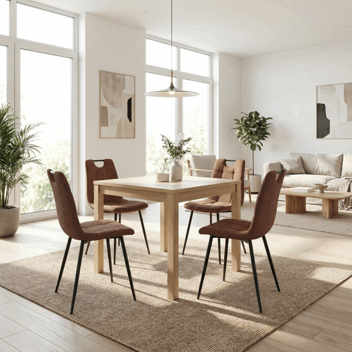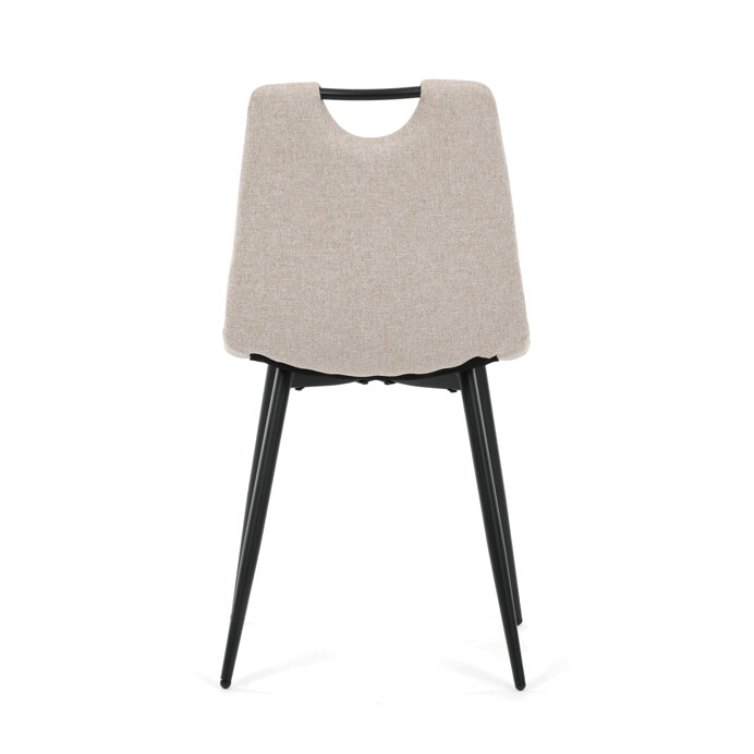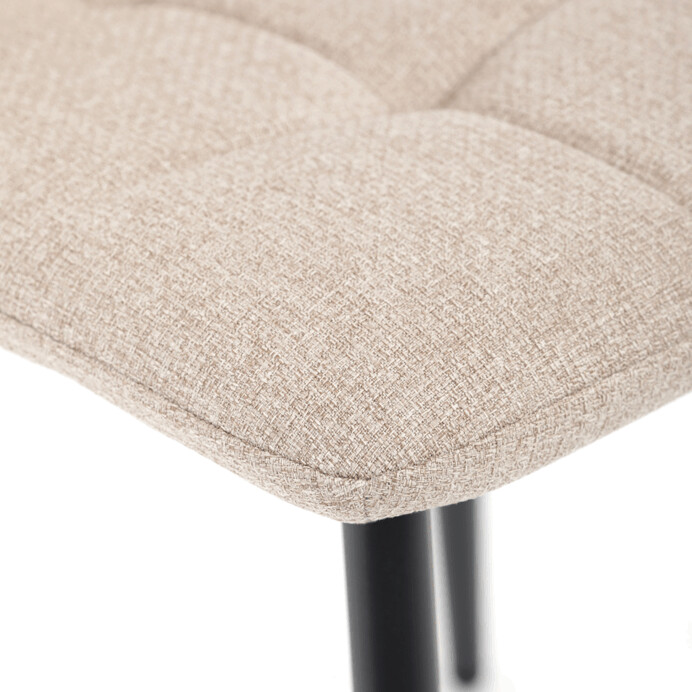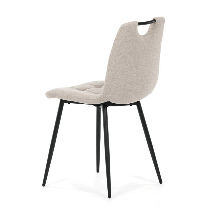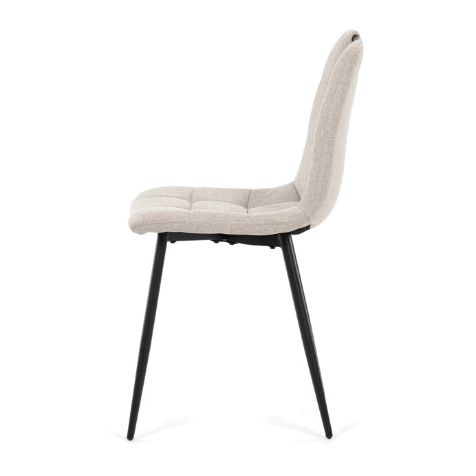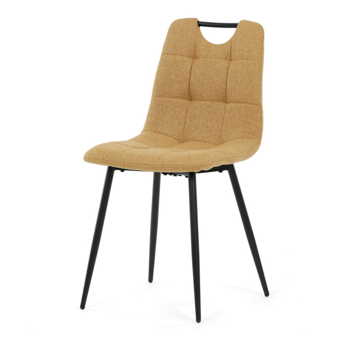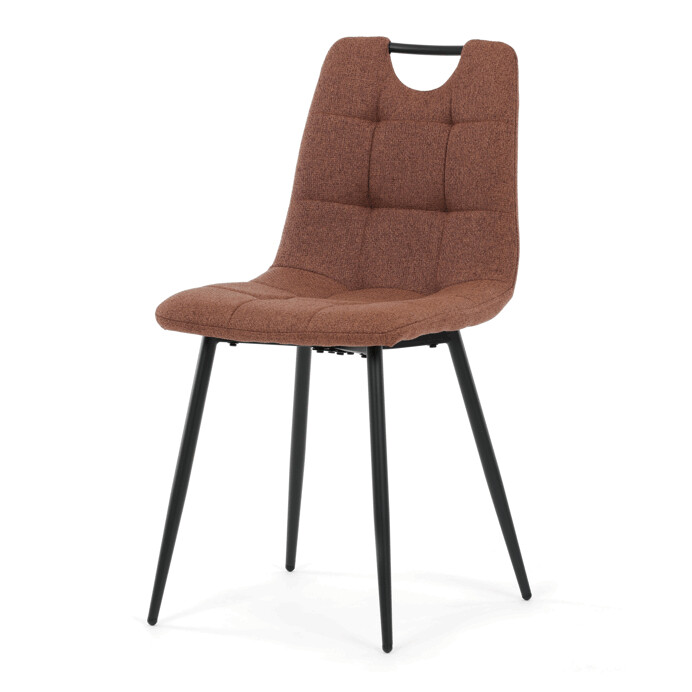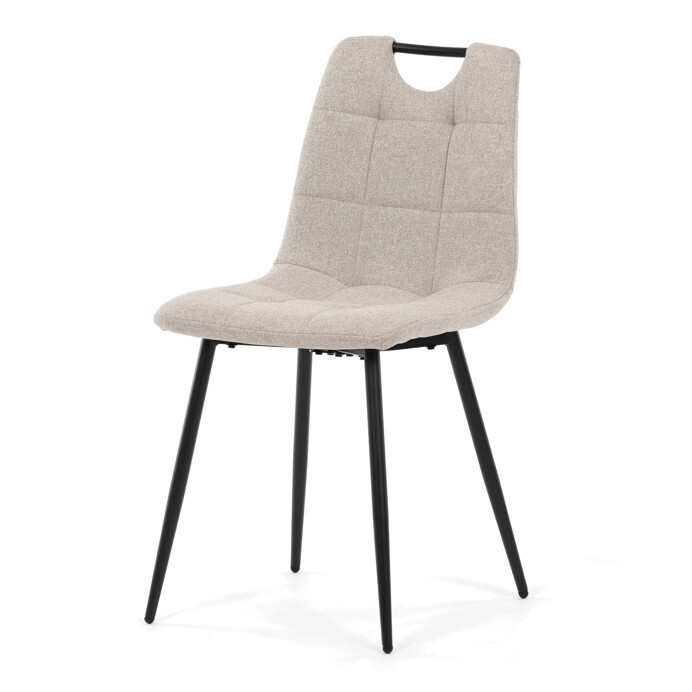 Jedálenská stolička DCL-V2017  kombinuje pohodlie s praktickým dizajnom vhodným do moderných interiérov. Sedák a operadlo sú potiahnuté látkou, ktorá sa ľahko udržiava a je doplnená dizajnovým prešívaním pre zvýraznenie estetického dojmu. Čierne matné kovové nohy zabezpečujú stabilitu a pevnosť celej stoličky, zatiaľ čo madlo v hornej časti operadla uľahčuje manipuláciu a prenášanie. Absencia podrúčok umožňuje väčšiu variabilitu usporiadania pri jedálenskom stole. Stolička je navrhnutá tak, aby poskytovala komfortné sedenie s dôrazom na jednoduchú údržbu a dlhú životnosť.
