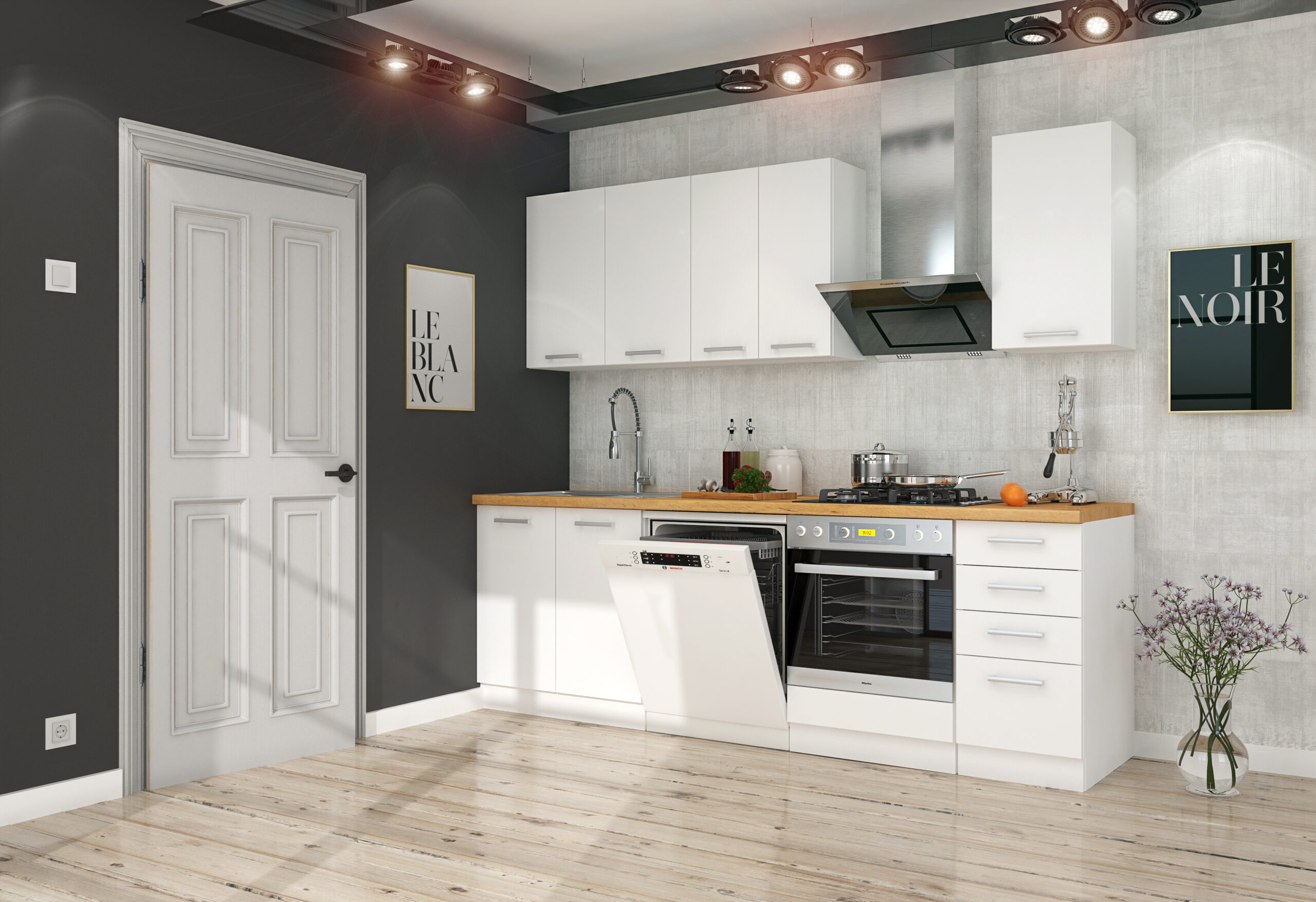 Čisté línie, štýlový dizajn a v neposlednom rade praktické riešenie vašej kuchyne. Štýlová svojim farebným prevedením, praktická a funkčná pre množstvo výberu z rôznych horných a dolných skriniek. EKO WHITE 180 je vyrobená z kvalitnej laminovanej drevotriesky DTD, ktorá je odolná voči mechanickému poškodeniu. Vyniká dlhou životnosťou, a to predsa taká aktívna miestnosť, akou je práve kuchyňa, naozaj potrebuje. Čisté línie vyniknú v elegantnom bielom prevedení. Sektorová kuchynská linka EKO WHITE 180 v atraktívnom bielom prevedení je minimalistická a moderná, zároveň je však elegantná a nadčasová. Kombinácia bieleho dekoru pôsobí príjemne a útulne. Kuchynská linka je sektorová, je teda možné si vybrať z veľkého množstva skriniek a vyskladať kuchyňu podľa Vašich predstáv s požadovaným rozmerom. Pracovná doska nie je v cene v kuchynskej linky. Pracovnú dosku je možné doobjednať v dekore ladiacom ku korpusu kuchynskej linky Eko White. Celkový moderný dizajn umocňujú kovové úchytky vo farbe matný chróm, ktoré sú v cene kuchynskej linky. Kuchynská linka je sektorová, je teda možné si vybrať z veľkého množstva skriniek a vyskladať kuchyňu podľa Vašich predstáv s požadovaným rozmerom.