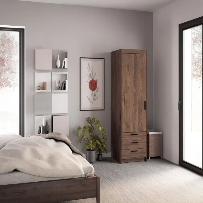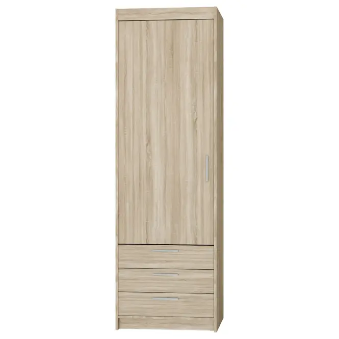Policová skriňa ELENA 1D 3S je univerzálnym nábytkom a svojim štýlom zapadne do modernej obývacej izby aj do spálne či predsiene. Skriňa ELENA je vyrobená z vysoko kvalitných materiálov, odolných proti poškriabaniu a slnečnému žiareniu, zaisťujúcich vysokú životnosť a bezpečnosť používania. Interiér skrine bol navrhnutý na priestor s policami a zároveň s 3 praktickými zásuvkami. Model sa vyznačuje jednoduchými tvarmi a priestranným interiérom. Jemné úchytky zdobia model pri zachovaní jeho reprezentatívnej hodnoty.