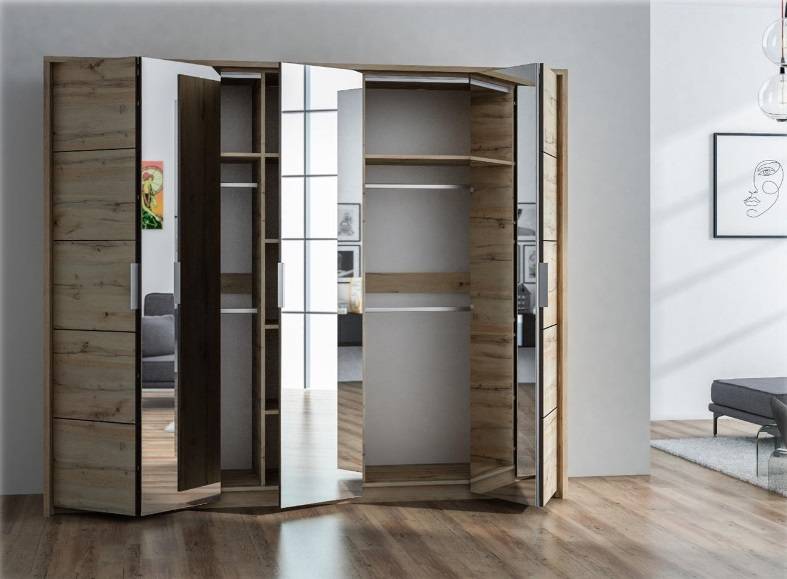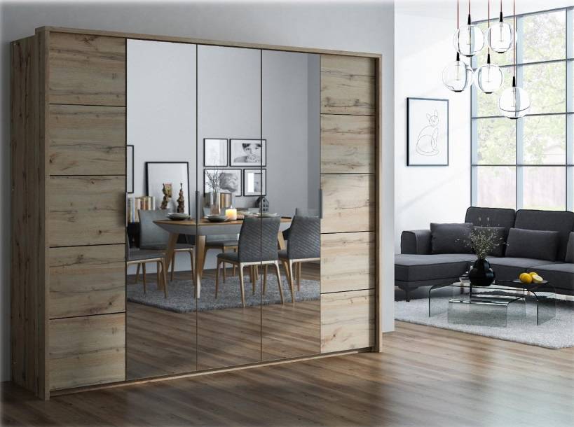 Dominantou skrine je zrkadlo v strednej časti, ktoré priestor opticky zväčší a dodá mu viac svetla. Model je charakteristický aj svojím zaujímavým otváracím systémom, ktorý podčiarkuje jeho moderný vzhľad.