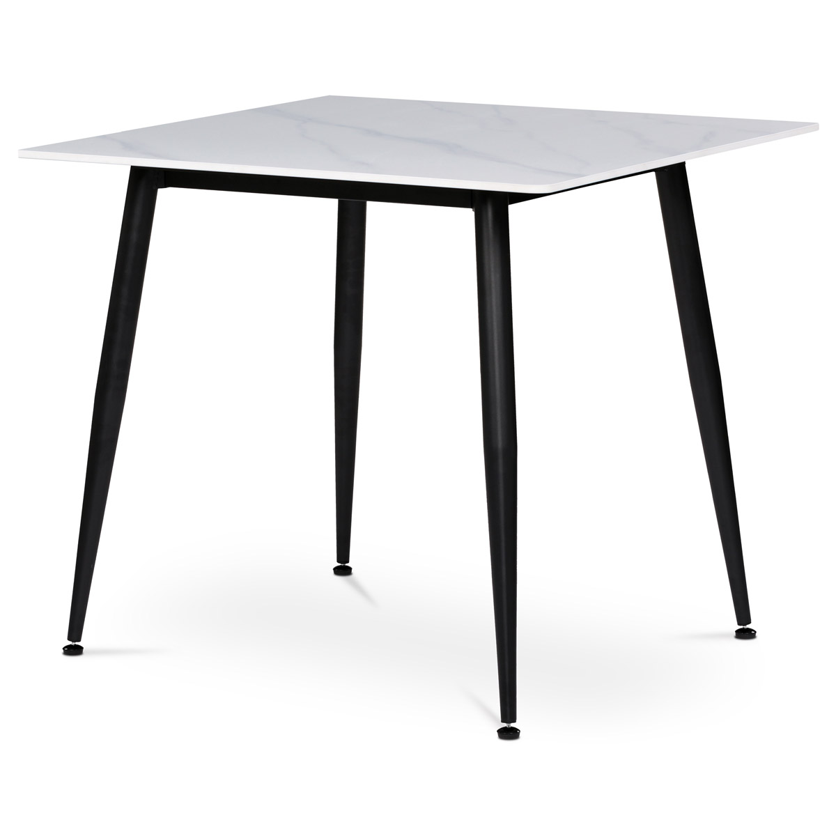 Objavte stelesnenie luxusu s jedálenským stolom HT-398M v ktorom snúbime vkusnosť s úžitkom. Jeho biela alebo šedá  keramická doska s mramorovým dekorom pôsobí luxusne a zároveň prakticky vďaka jednoduchej údržbe. Stabilné čierne kovové rektifikačné nohy vytvárajú kontrastný prvok, ktorý dodá priestoru šmrnc. Štvorcový tvar stola je ideálny pre menšie jedálne či kuchynské kúty, kde oceníte jeho kompaktné rozmery. Tento stôl sa stane prirodzenou dominantou každého moderne ladeného interiéru a ponúka dostatok priestoru na pohodlné stolovanie.