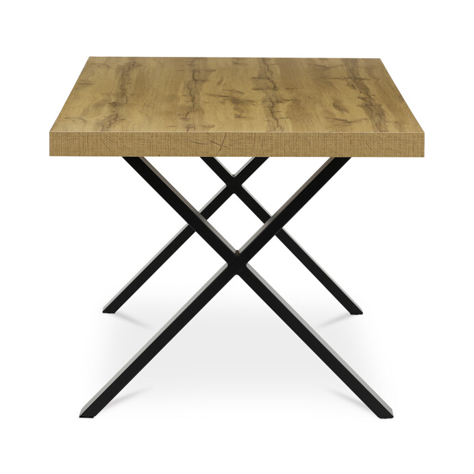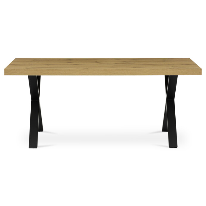 Objavte stelesnenie luxusu s jedálenským stolom, v ktorom snúbime vkusnosť s úžitkom. Jedálenský stôl HT-R5316 ponúka modernú kombináciu 3D dekoru sivého dubu alebo divokého dubu na MDF doske s matnou povrchovou úpravou a pevným kovovým podnožím v tvare X v čiernej farbe. Doska stola je vyrobená z lamina s ABS hranou, ktorá zvyšuje odolnosť proti poškodeniu a uľahčuje údržbu. Stabilné kovové nohy zabezpečujú pevnosť a stabilitu celej konštrukcie, pričom dizajn v tvare X dodáva stolíku výrazný industriálny charakter. Rozmery 180x90x76 cm poskytujú dostatok priestoru pre pohodlné stolovanie aj väčší počet osôb. Stôl je vhodný do moderne zariadených jedálenských priestorov, kde oceníte kombináciu praktickosti a štýlového vzhľadu.