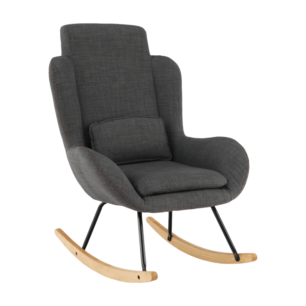 Hojdacie a relaxačné kreslo HARPER, ktoré je vyrobené z kvalitného dreva. Sedadlo a operadlo je čalúnené látkou v sivom farebnom prevedení. Pevná konštrukcia, ktorá spája sedaciu časť a nožičky je z kovu v čiernej farbe. Kreslo je dodávané s dekoratívnym vankúšom.