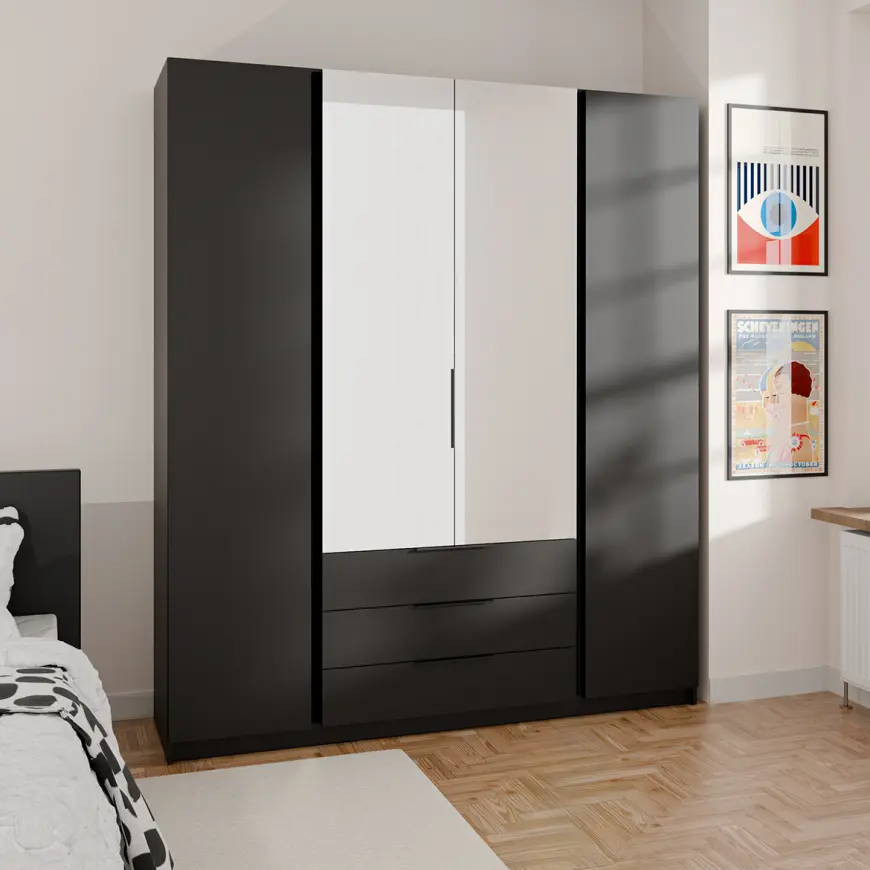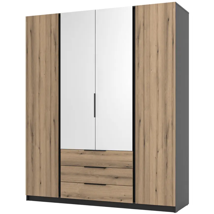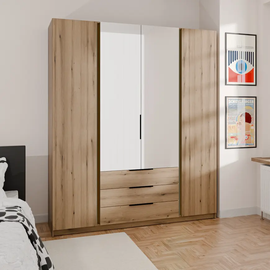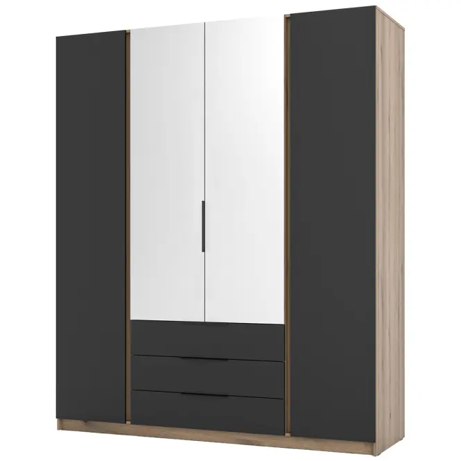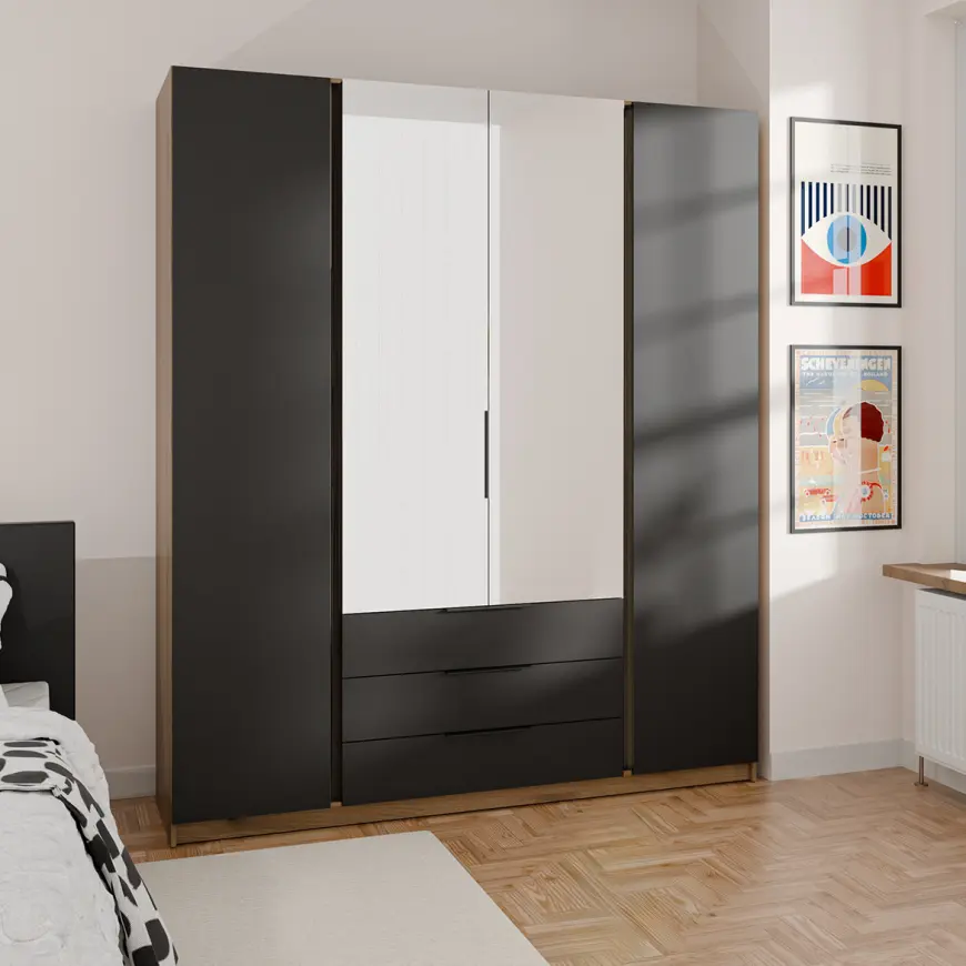 Skrine KAJA  sú viac než len úložný nábytok – sú výsledkom starostlivého dizajnu s praktickým prístupom k organizácii priestoru. Ich pôsobivá kapacita umožňuje usporiadať aj najrozsiahlejší šatník alebo zbierku predmetov pri zachovaní estetiky a vysokej kvality spracovania. Široká škála farebných kombinácií navyše umožňuje prispôsobiť skrine Kaja akémukoľvek dizajnu interiéru a dodať im pôsobivý štylistický akcent.  Šatník má 4 dvierka, vnútorné dvere majú zrkadlo + 3 zásuvky.