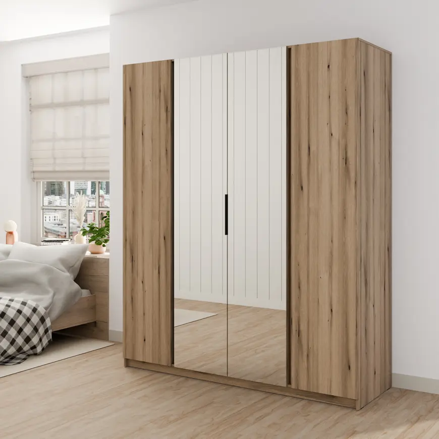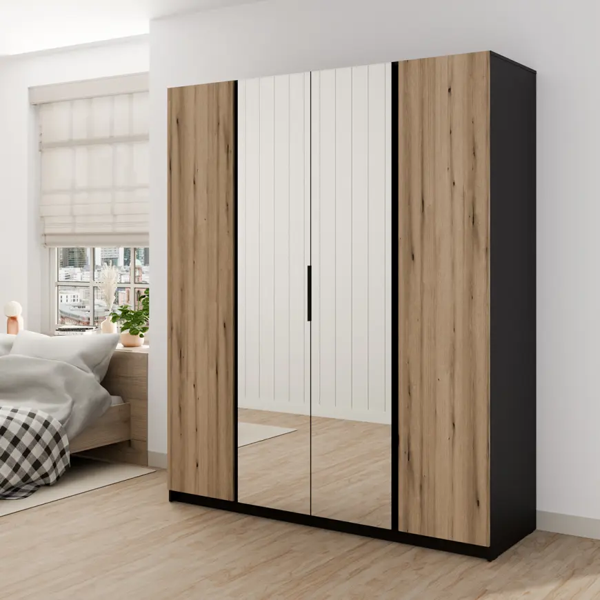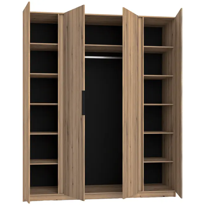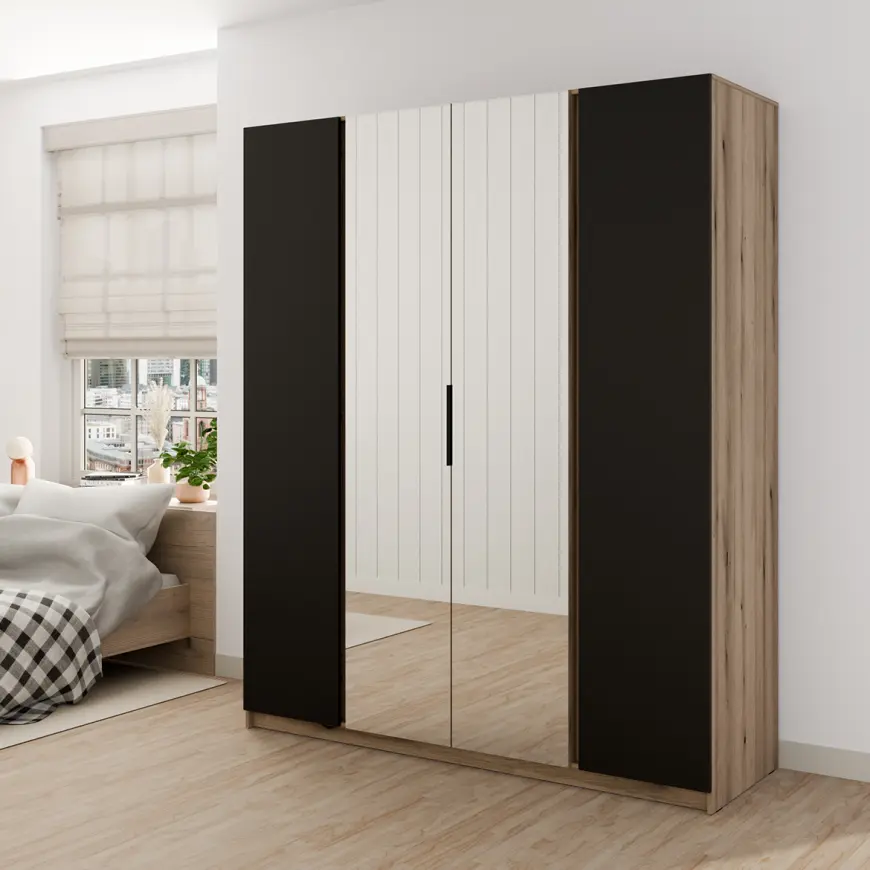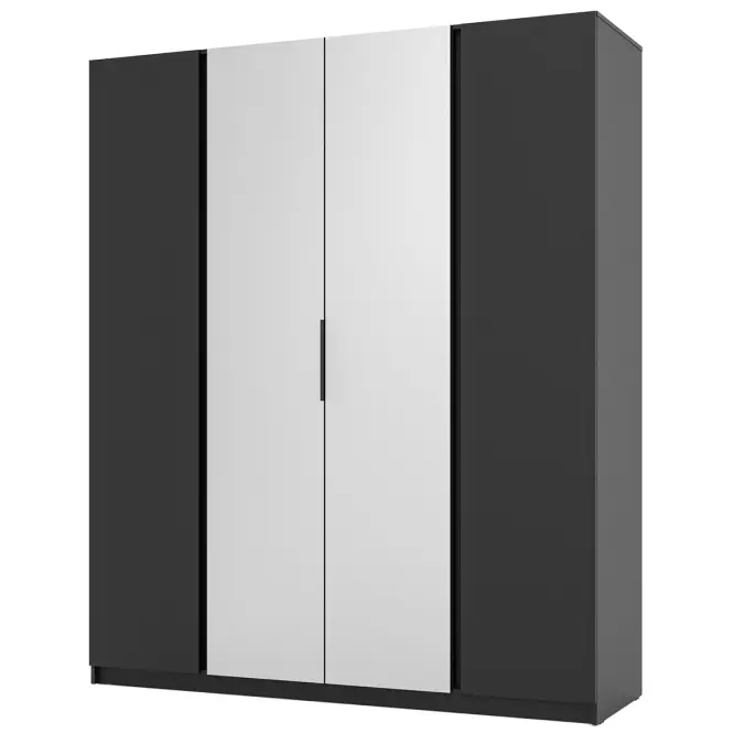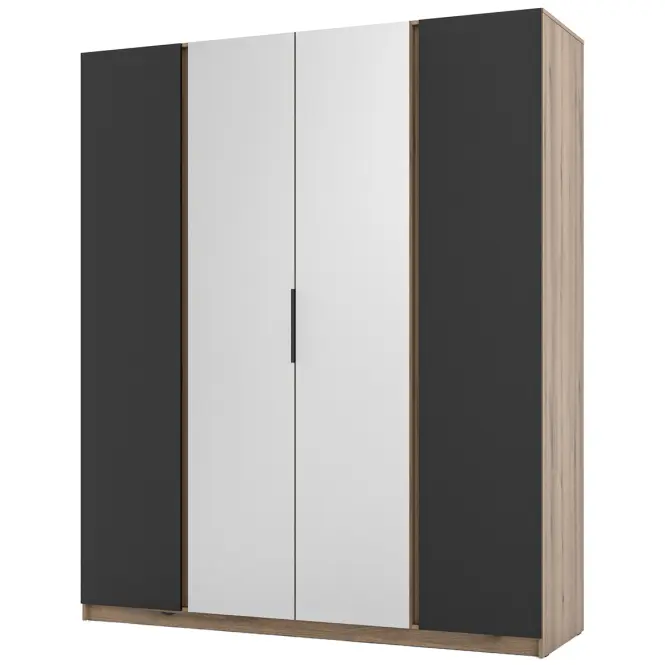 Skrine KAJA sú viac než len úložný nábytok – sú výsledkom starostlivého dizajnu s praktickým prístupom k organizácii priestoru. Ich pôsobivá kapacita umožňuje usporiadať aj najrozsiahlejší šatník alebo zbierku predmetov pri zachovaní estetiky a vysokej kvality spracovania. Široká škála farebných kombinácií navyše umožňuje prispôsobiť skrine Kaja akémukoľvek dizajnu interiéru a dodať im pôsobivý štylistický akcent. Šatník má 4 dvierka a vnútorné dvere majú zrkadlo. Za strednými dverami je jedna polica a vešiak na šaty