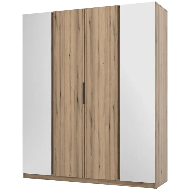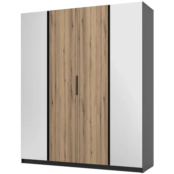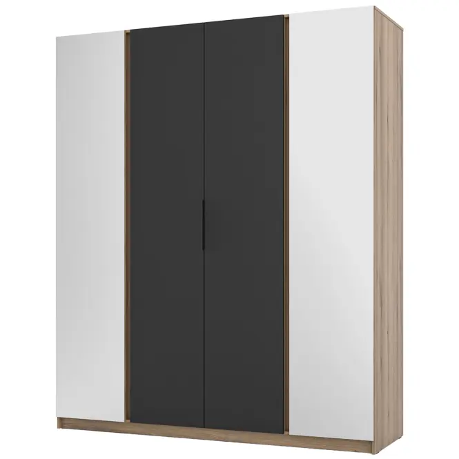 Skrine KAJA sú viac než len úložný nábytok – sú výsledkom starostlivého dizajnu s praktickým prístupom k organizácii priestoru. Ich pôsobivá kapacita umožňuje usporiadať aj najrozsiahlejší šatník alebo zbierku predmetov pri zachovaní estetiky a vysokej kvality spracovania. Široká škála farebných kombinácií navyše umožňuje prispôsobiť skrine Kaja akémukoľvek dizajnu interiéru a dodať im pôsobivý štylistický akcent. Šatník má 4 dvierka a vonkajšie dvere majú zrkadlo. Za strednými dverami je jedna polica a vešiak na šaty.