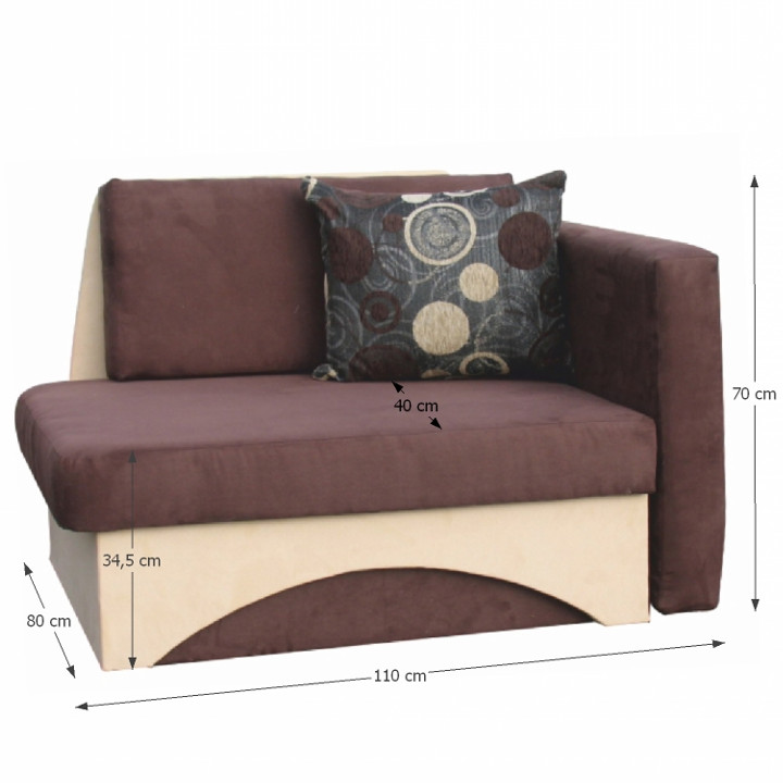 Praktické a moderné rozkladacie kreslo KUBOŠ, dodávané s jedným vankúšom. Kreslo má aj úložný priestor a poskytuje Vám aj rozklad pre príležitostné spanie. Kreslo sa hodí do akéhokoľvek interiéru. Farebné prevedenie: altara hnedá+béžová. Výber pravého/ľavého prevedenia
