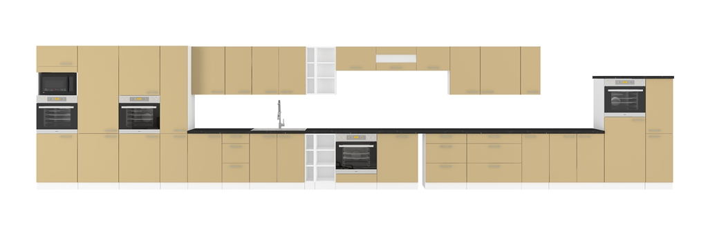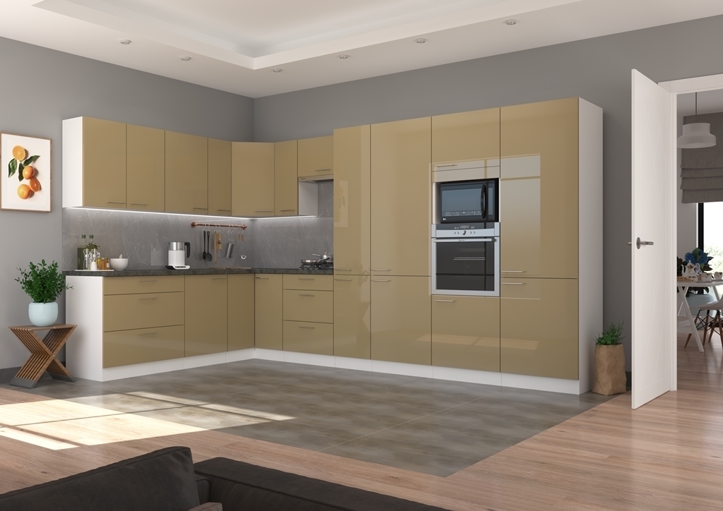 Moderná kuchynská sektorová linka LARA v nadčasovom dizajne kombinuje biely korpus s elegantnými lesklými prednými plochami v odtieni cappuccino, čím vytvára príjemný a svetlý vzhľad vhodný do moderných aj klasických interiérov. Linka je navrhnutá ako sektorový systém, ktorý umožňuje variabilné usporiadanie jednotlivých skriniek podľa priestoru a potrieb domácnosti. Kuchynská linka LARA ponúka praktické úložné priestory a esteticky čisté línie, ktoré opticky zväčšujú priestor a dodávajú kuchyni moderný charakter. Kvalitné materiály zabezpečujú jednoduchú údržbu, vysokú odolnosť voči vlhkosti a dlhú životnosť. Pracovná doska nie je v cene v kuchynskej linky. Pracovnú dosku je možné doobjednať v dekore ladiacom ku kuchynskej linky LARA. Celkový elegantný dojem umocňujú úchytky v chrómovom dekore, ktoré sú v cene kuchynskej linky. Kuchynská linka je sektorová, je teda možné si vybrať z veľkého množstva skriniek a vyskladať kuchyňu podľa Vašich predstáv s požadovaným rozmerom.