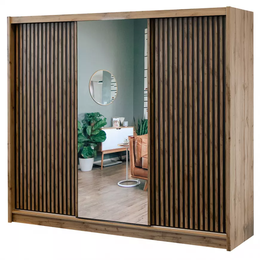 Táto moderná skriňa spája dynamický vzhľad s precíznym spracovaním a prináša všetko, čo potrebujete pre pohodlné a bezpečné každodenné používanie. Skriňa LONDON 250 zrkadlo je tým pravým riešením pre váš moderný dizajn vo vašej splálni.