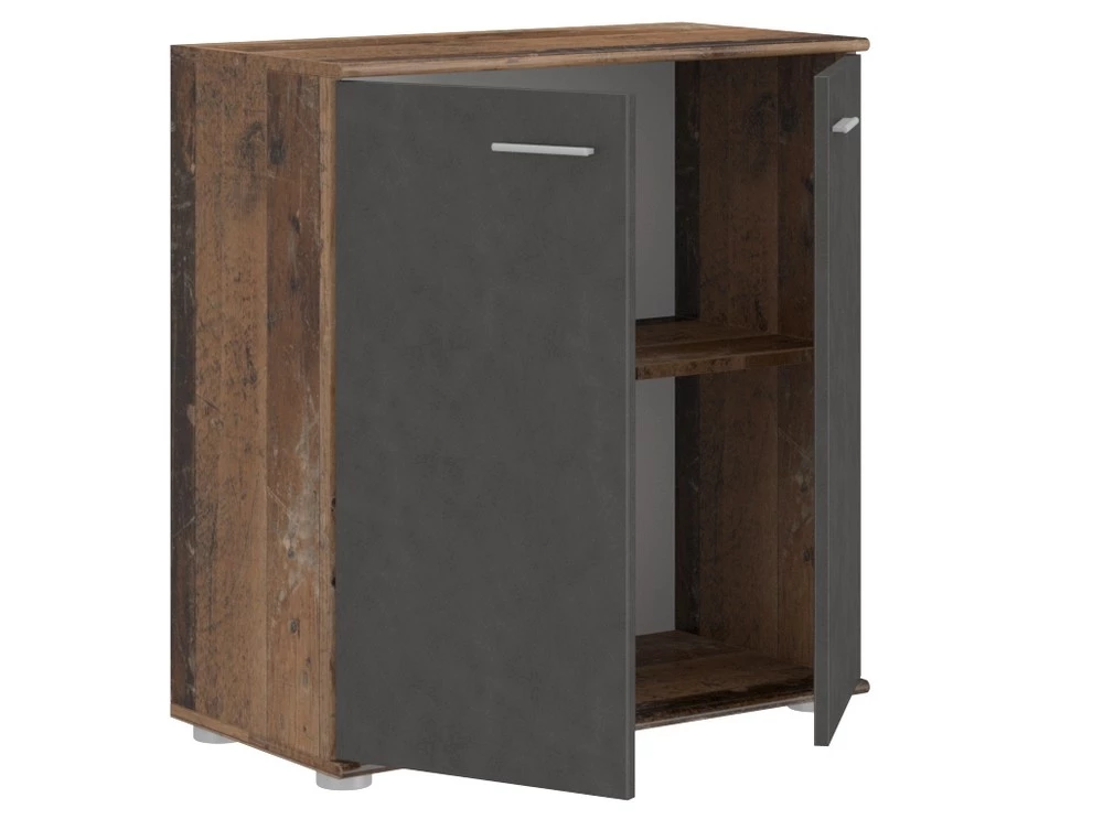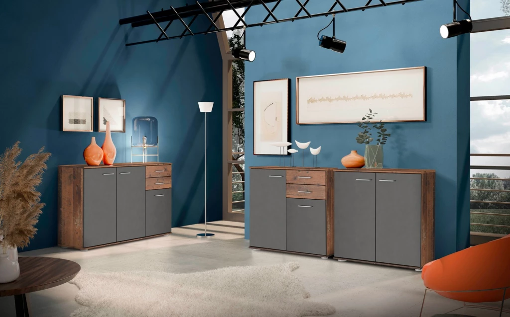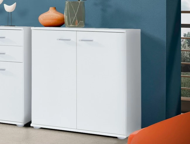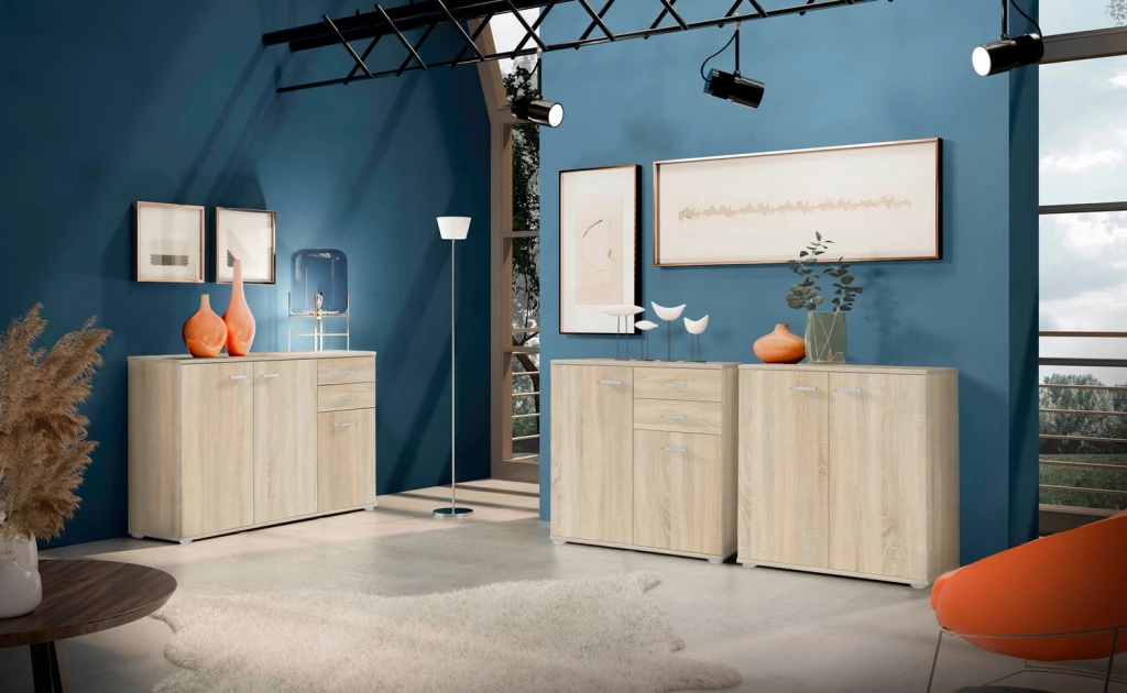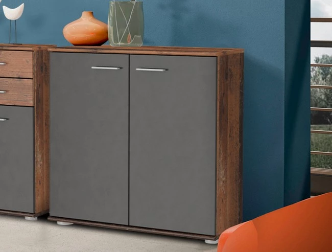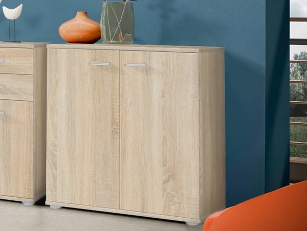 Pokiaľ hľadáte priestrannú dvojdverovú komodu do svojho interiéru MIKE 3 2T je tým správnym výberom. Poskytne nielen veľký úložný priestor, ale vďaka nadčasovému dizajnu skvele zapadne do každého interiéru. Komoda do obývačky je vyrobená z kvalitnej laminovanej dosky a jej dvierka dopĺňajú úchyty v sivej farbe. Komoda ponúka police za dvierkami. Toto všetko využijete na uskladnenie oblečenia, a mnoho ďalšieho. Komoda stojí na nízkych nožičkách. Skombinovať ju môžete s komodami Mike 1 a Mike 2