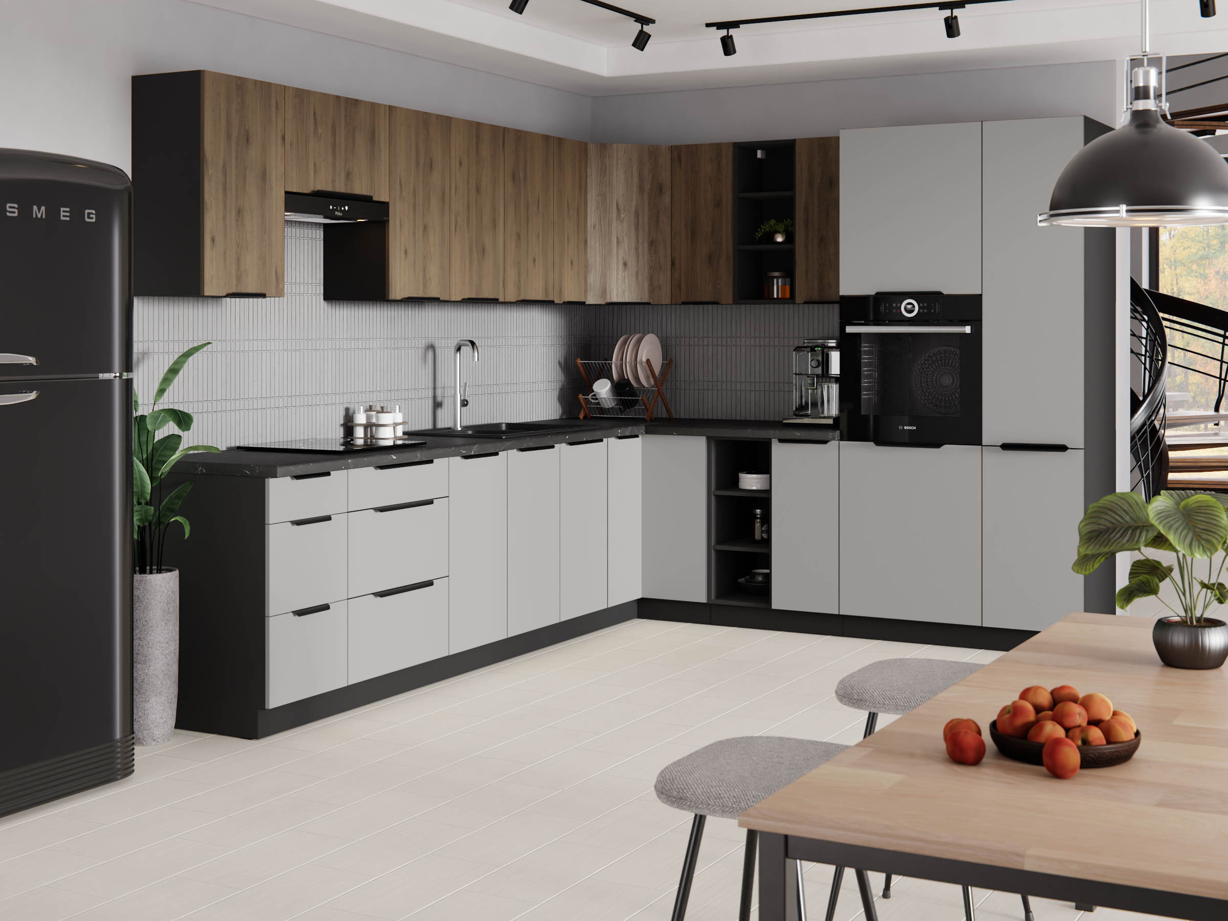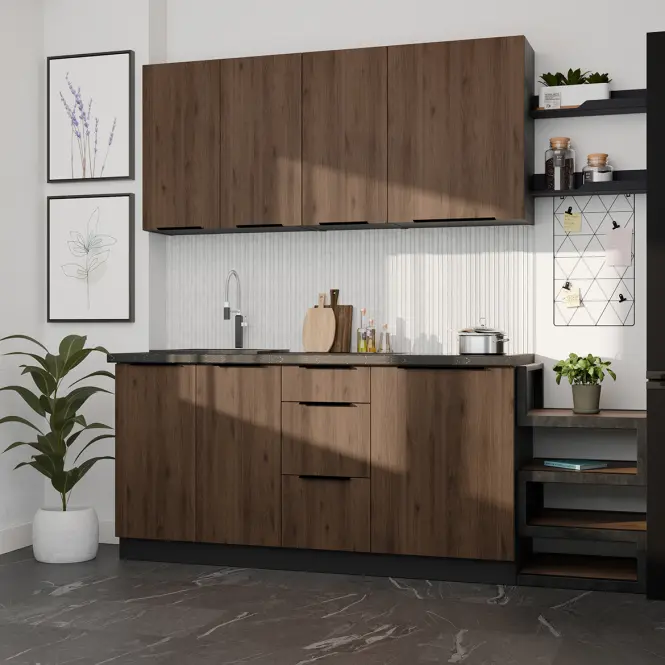 Sektorová kuchynská linka MONZA 180 v atraktívnom farebnom prevedení čierna / orech okapi je minimalistická a moderná, zároveň je však elegantná a nadčasová. Kombinácia dekorov tmavého dreva a čiernej pôsobí príjemne a útulne. Kuchynská linka je sektorová, je teda možné si vybrať z veľkého množstva skriniek a vyskladať kuchyňu podľa Vašich predstáv s požadovaným rozmerom. Pracovná doska nie je v cene v kuchynskej linky. Pracovnú dosku je možné doobjednať v dekore ladiacom ku korpusu kuchynskej linky Monza. Celkový moderný dizajn umocňujú kovové úchytky vo farbe čierny chróm, ktoré sú v cene kuchynskej linky. Kuchynská linka je sektorová, je teda možné si vybrať z veľkého množstva skriniek a vyskladať kuchyňu podľa Vašich predstáv s požadovaným rozmerom.