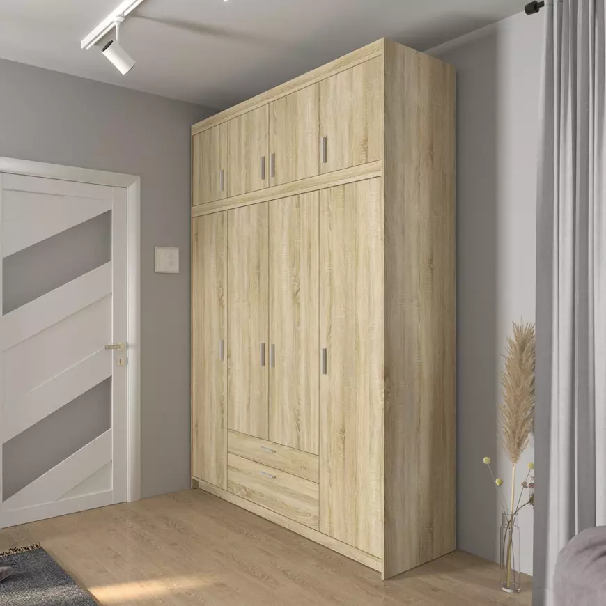Najväčší problém v domácnosti je nedostatok úložného priestoru. Máme čoraz viac nepotrebných či potrebných vecí, ktoré nemajú svoje stále miesto, neustále ich premiestňujeme zo skrine na poličku  a po nejakom čase nemáme ani len tušenie, kde sme to založili. Vyriešte to raz a navždy so šatníkovým programom ELENAPraktický výber skríň, ktoré môžete kombinovať podľa toho, aký veľký úložný priestor potrebujete či už v detskej izbe, spálni alebo na chodbe. Šatník je vyrobený z kvalitnej laminovanej drevotriesky v prevedení biela, sonoma, dub lefkas.