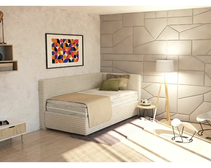 Posteľ SOUL je veľmi elegantné a komfortné jednolôžko vhodné do spálne, detskej izby alebo ubytovne, penziónu, či hotela. Možno využiť aj na sedenie.