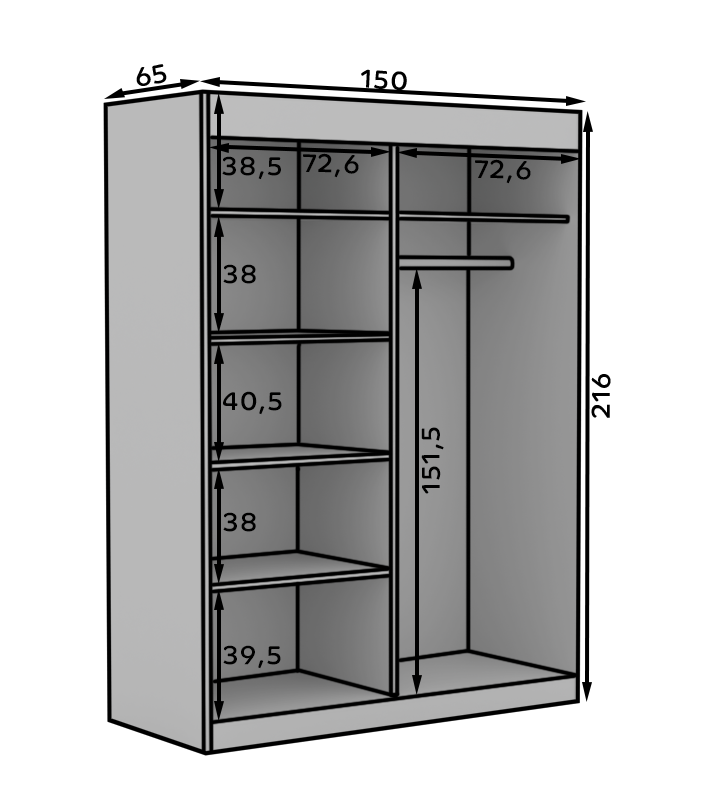 | Rozmery š/h/v | 150 x 65 x 216 cm |
