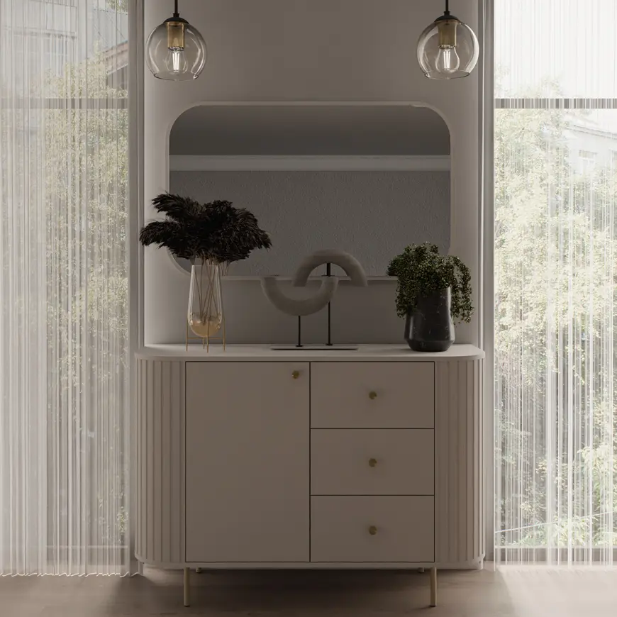 Kolekcia OVALIO je harmonickou zmesou moderného dizajnu a decentnej, ženskej elegancie. Jej zaoblené hrany a precízne zvislé rezy dodávajú nábytku jedinečnú ľahkosť a zároveň vytvárajú exkluzívny vzhľad. Táto kolekcia je ideálna pre tých, ktorí chcú do svojho interiéru vniesť jemnosť, pokoj a estetický poriadok.
