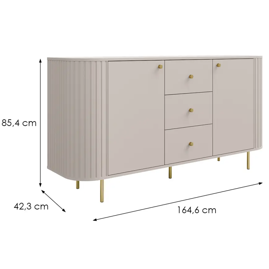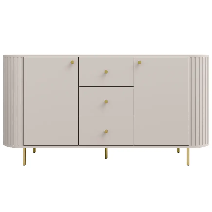 Tlmené farby pieskovo béžovej a cremónskeho duba  robia z nábytku perfektný doplnok do svetlých, moderných interiérov. Zlaté detaily alebo čierne, závisí od vybraného variantu, krásne rozbíjajú hladký povrch a dodávajú kolekcii nádych noblesy.