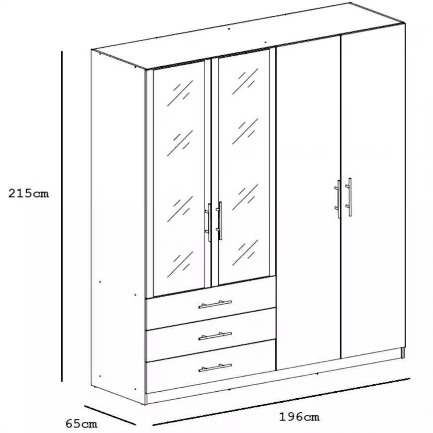 Táto moderná šatníková skriňa zaujme na prvý pohľad ergonomickými úchytkami. Vďaka čistým líniám a modernému farebnému prevedeniu sa stane výrazným, no zároveň vkusným doplnkom každého interiéru.