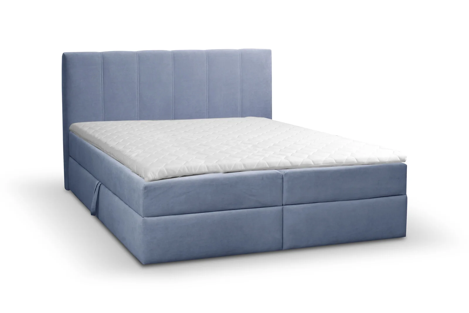 Luxusná boxspringová posteľ ELA sa vyznačuje pôsobivým vzhľadom a precíznym spracovaním. Dizajnová posteľ ELA je vyrobená z kvalitných materiálov a poskytuje maximálny relax a odpočinok. Elegantné prešitie čalúnenia čela postele z nej urobí klenot vo Vašej spálni. Posteľ je dostupná v širokej škále kvalitných vodeodolných a ľahko umývateľných látok, poťahovú látku si môžete vybrať v rôznych farbách a štýloch. Dokonalý odpočinok zabezpečuje kvalitný matrac z bonelových pružín s nadštandardnou výškou a vyššou pevnosťou má tvarovú stálosť, je vzdušný, čo zabezpečuje správnu mikroklímu a komfort. K maximálnemu pohodliu prispeje TOPPER z HR alebo VISCO peny za príplatok. Konštrukcia postele je drevotriesková, pevná a zaručuje nosnosť na jedno lôžko až 140 kg. Určite oceníte aj veľkorysý úložný priestor s komfortným prístupom zboku, ktorý je súčasťou postele.