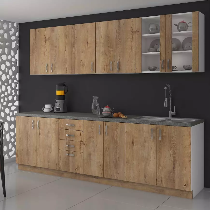 Sektorová kuchynská linka SARA 260 v atraktívnom farebnom prevedení Dub Lefkas je minimalistická a moderná, zároveň je však elegantná a nadčasová. Kombinácia dekoru Dub Lefkas / biela pôsobí príjemne a útulne. Kuchynská linka je sektorová, je teda možné si vybrať z veľkého množstva skriniek a vyskladať kuchyňu podľa Vašich predstáv s požadovaným rozmerom. Pracovná doska nie je v cene v kuchynskej linky. Pracovnú dosku je možné doobjednať v dekore ladiacom ku korpusu kuchynskej linky Sara. Celkový moderný dizajn umocňujú kontrastné úchytky v dekore chróm, ktoré sú v cene kuchynskej linky. Kuchynská linka je sektorová, je teda možné si vybrať z veľkého množstva skriniek a vyskladať kuchyňu podľa Vašich predstáv s požadovaným rozmerom.