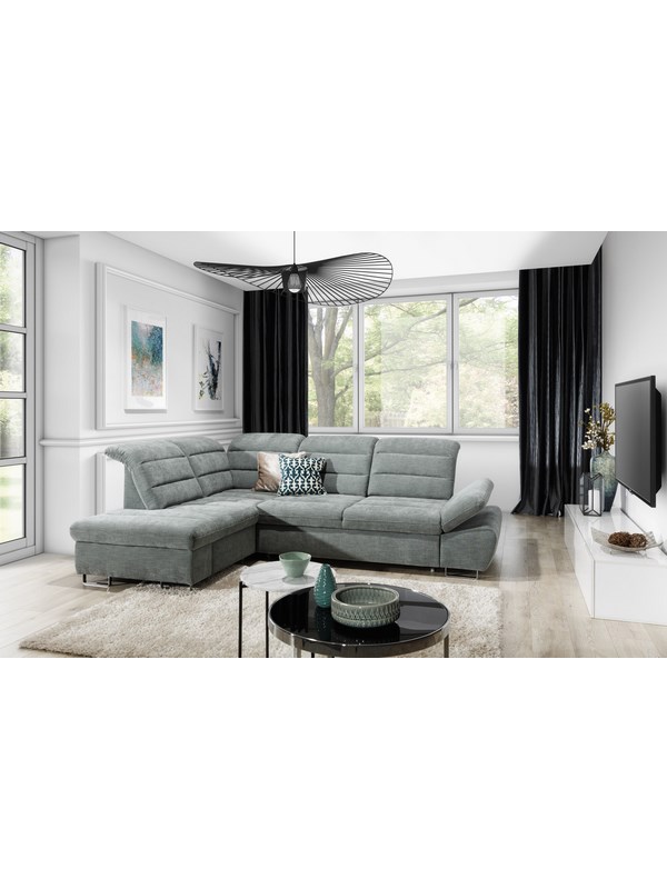 Elegantná rohová sedacia súprava AMORE OT, s rozkladom a úložným priestorom. Komfortné sedenie Vám zaručia výškovo nastaviteľné podrúčky, výško nastaviteľné a posúvné opierky na chrbát. Sedacia súprava je vybavená pružinami FALISTE, ktoré v kombinácii s polyuretánovou penou zabezpečujú vysoký komfort sedenia – stredne mäkké sedenie. Pevné kovové nohy dotvárajú moderný vzhľad sedacej súpravy AMORE OT. Možnosť výberu pravého a ľavého prevedenia. Sedaciu súpravu je možné umiestniť aj do priestoru, pretože je celočalúnena.