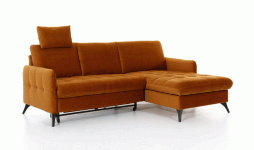 Luxusná rohová sedacia súprava KALMA, ktorá je vďaka svojím rozmerom vhodná aj do menších priestorov. Sedenie je výrazne prešívané čo dodáva sedacej súprave eleganciu. Súčasťou sedacej súpravy je jeden záhlavník. Sedenie je stredne mäkké, vďaka pružine FALISTA a Pur pene. Sezónne veci odložíte do úložného priestoru, ktorým sedacia súprava disponuje. Jednoduchými krokmi sedaciu súpravu rozložíte, čím Vám vznikne plnohodnotná plocha na príležitostné spanie. Možnosť výberu pravého a ľavého prevedenia.