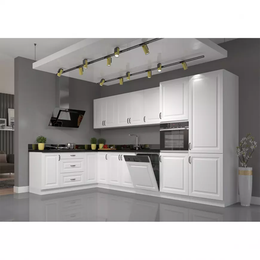 Kuchyňa STILO 260 sa vyznačuje módnymi farbami, frézovanými prednými časťami a krásnymi úchytmi. Krásne frézovanie a atraktívne, pútavé úchyty dodajú kuchyni eleganciu a úžasný vzhľad. Kuchynský nábytok STILO je vyrobený z odolnej a pevnej nábytkovej dosky. Odolnosť proti poškodeniu, vyššej teplote a vlhkosti robí z laminovanej dosky ideálnu dosku do kuchynských miestností. Štýlová svojim farebným prevedením, praktická a funkčná pre množstvo výberu z rôznych horných a dolných skriniek. STILO 260 je vyrobená z kvalitnej laminovanej drevotriesky DTD, ktorá je odolná voči mechanickému poškodeniu. Vyniká dlhou životnosťou, a to predsa taká aktívna miestnosť, akou je práve kuchyňa, naozaj potrebuje. Sektorová kuchynská linka STILO 260 v atraktívnom bielom prevedení je minimalistická a moderná, zároveň je však elegantná a nadčasová. Kombinácia bieleho dekoru pôsobí príjemne a útulne. Pracovná doska nie je v cene v kuchynskej linky. Pracovnú dosku je možné doobjednať v dekore ladiacom ku korpusu kuchynskej linky Stilo. Celkový moderný dizajn umocňujú kovové úchytky v čiernej farbe, ktoré sú v cene kuchynskej linky. Kuchynská linka je sektorová, je teda možné si vybrať z veľkého množstva skriniek a vyskladať kuchyňu podľa Vašich predstáv s požadovaným rozmerom.