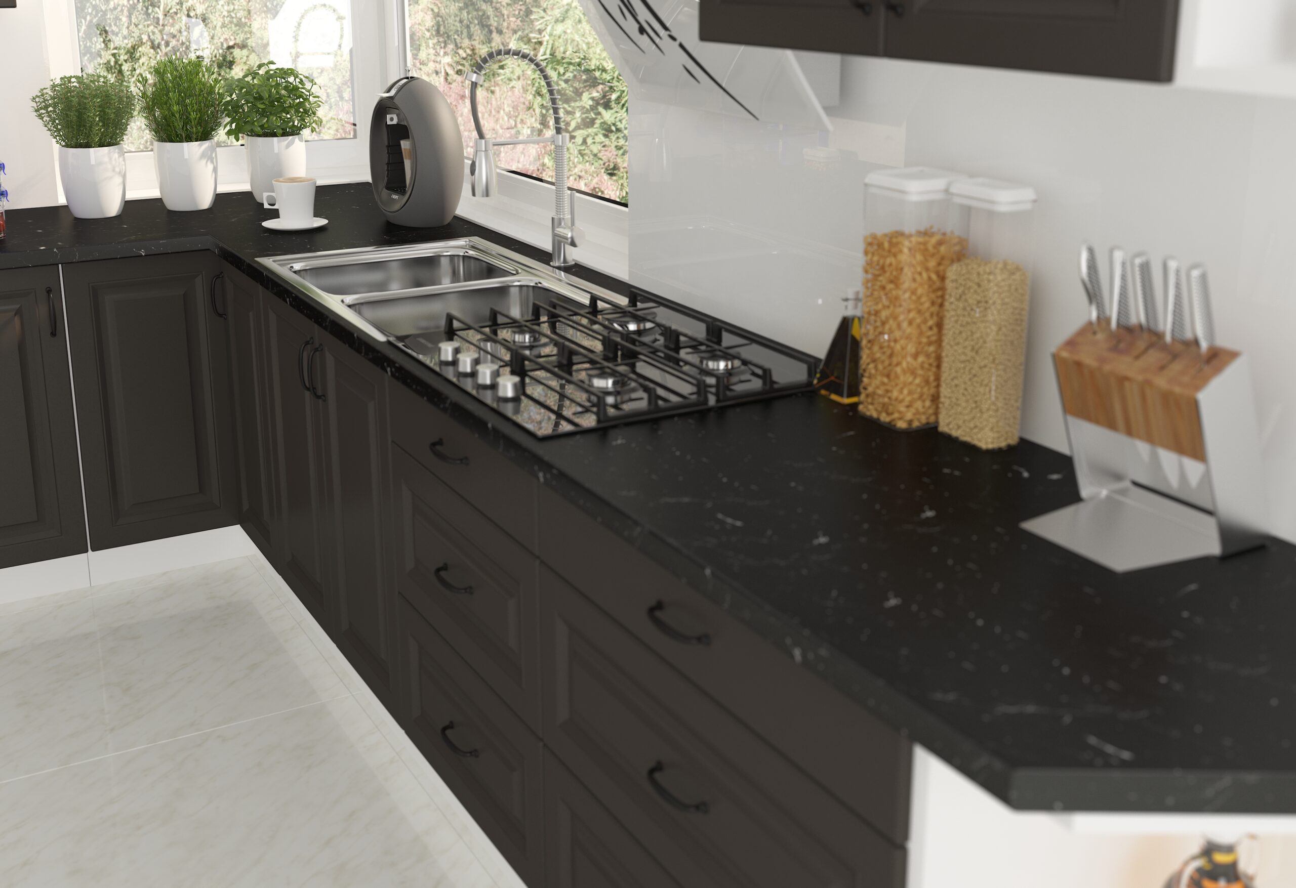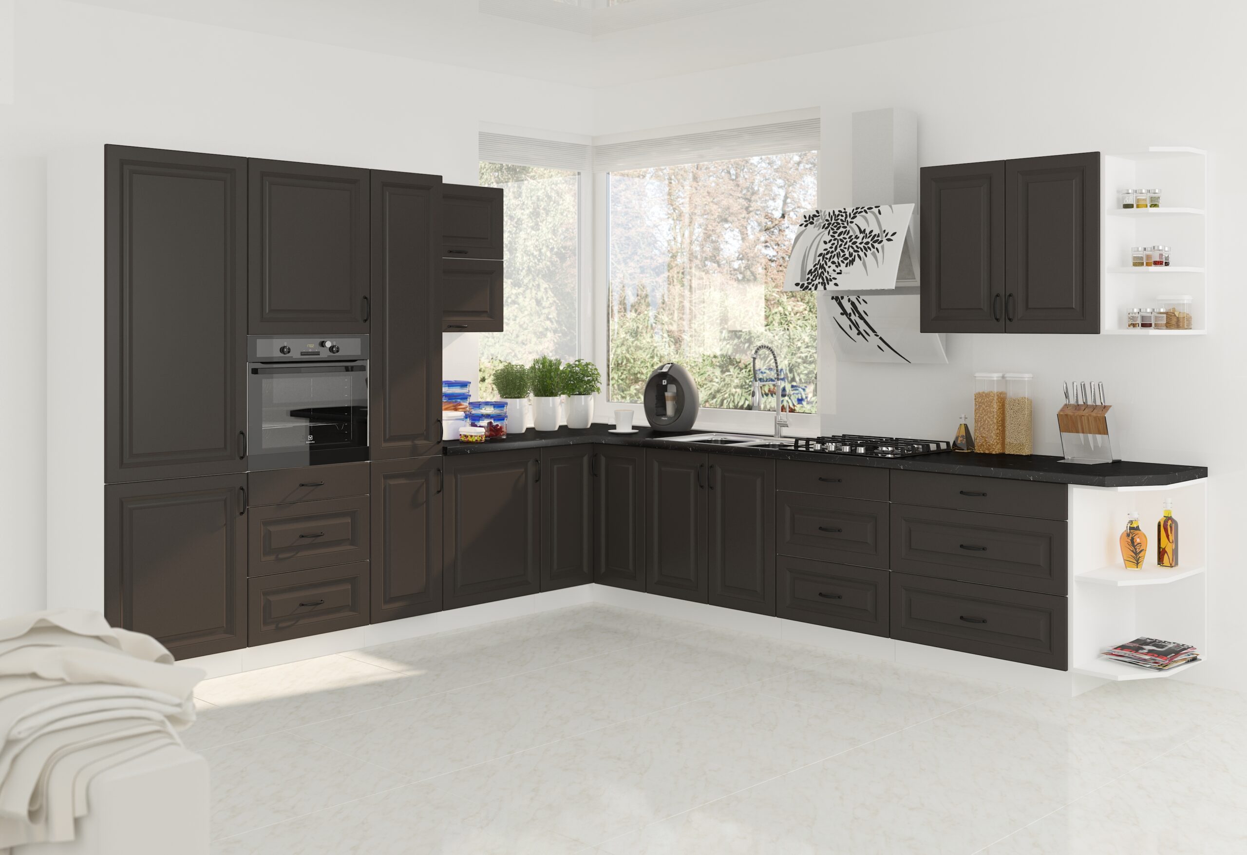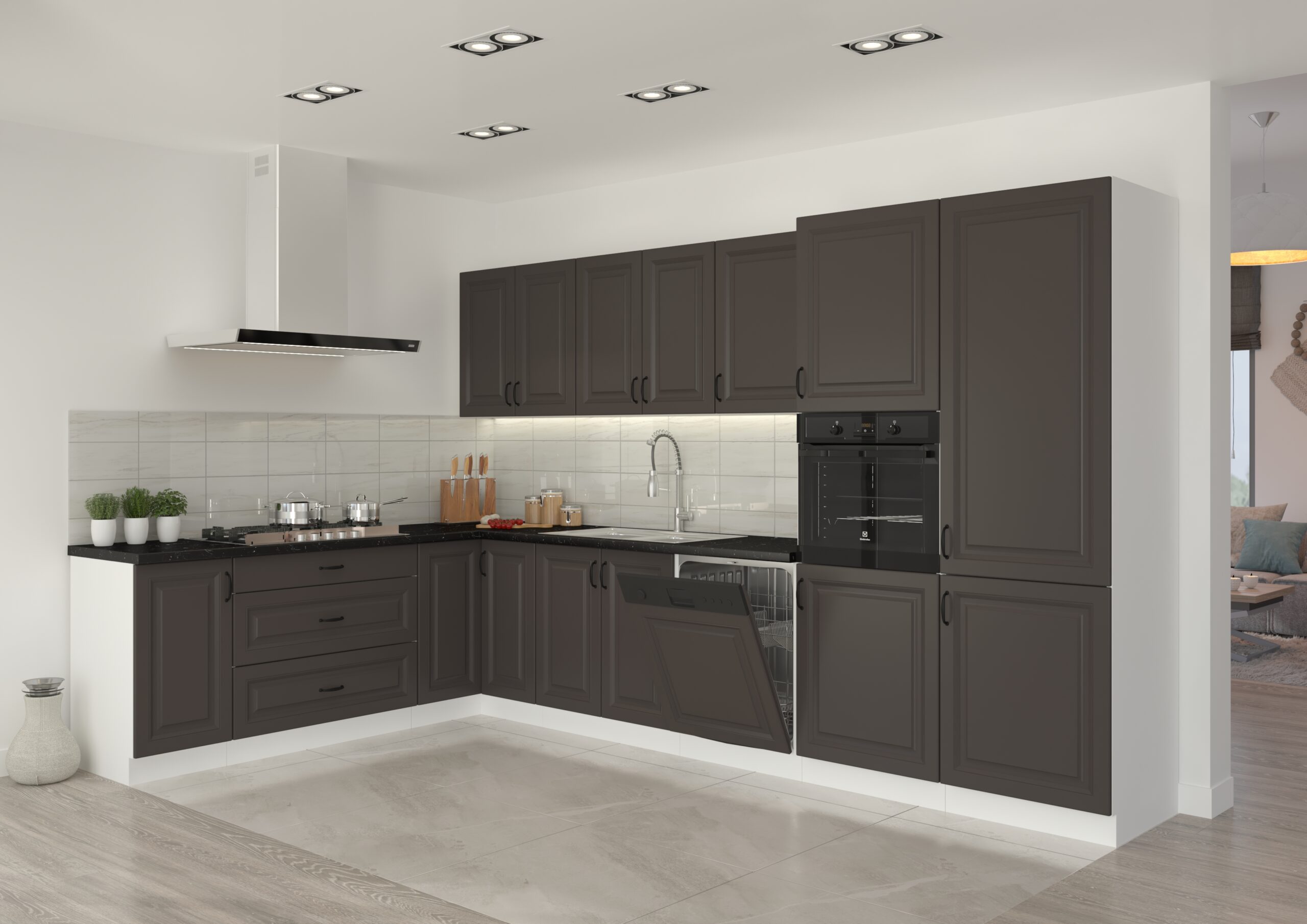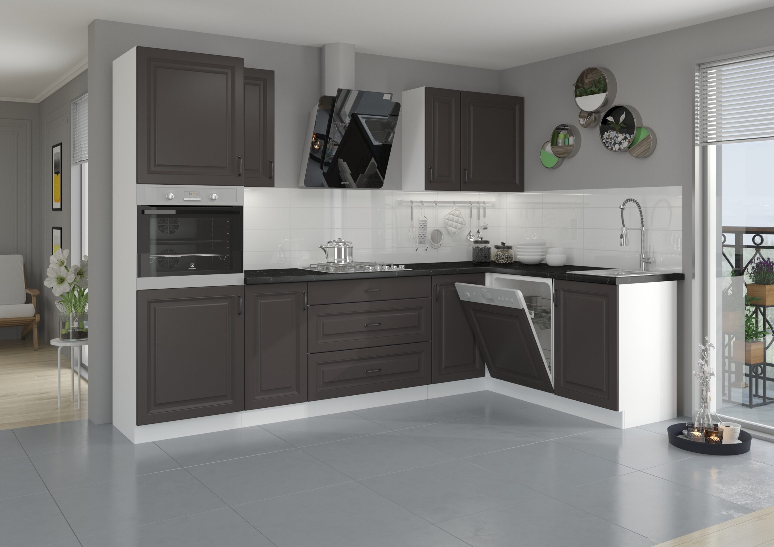 Kuchyňa STILO 260 sa vyznačuje módnymi farbami, frézovanými prednými časťami a krásnymi úchytmi. Krásne frézovanie a atraktívne, pútavé úchyty dodajú kuchyni eleganciu a úžasný vzhľad. Kuchynský nábytok STILO je vyrobený z odolnej a pevnej nábytkovej dosky. Odolnosť proti poškodeniu, vyššej teplote a vlhkosti robí z laminovanej dosky ideálnu dosku do kuchynských miestností. Štýlová svojim farebným prevedením, praktická a funkčná pre množstvo výberu z rôznych horných a dolných skriniek. STILO 260 je vyrobená z kvalitnej laminovanej drevotriesky DTD, ktorá je odolná voči mechanickému poškodeniu. Vyniká dlhou životnosťou, a to predsa taká aktívna miestnosť, akou je práve kuchyňa, naozaj potrebuje. Sektorová kuchynská linka STILO 260 v atraktívnom grafitovom matnom a bielom prevedení je minimalistická a moderná, zároveň je však elegantná a nadčasová. Kombinácia bieleho dekoru pôsobí príjemne a útulne. Pracovná doska nie je v cene v kuchynskej linky. Pracovnú dosku je možné doobjednať v dekore ladiacom ku korpusu kuchynskej linky Stilo. Celkový moderný dizajn umocňujú kovové úchytky v čiernej farbe, ktoré sú v cene kuchynskej linky. Kuchynská linka je sektorová, je teda možné si vybrať z veľkého množstva skriniek a vyskladať kuchyňu podľa Vašich predstáv s požadovaným rozmerom.