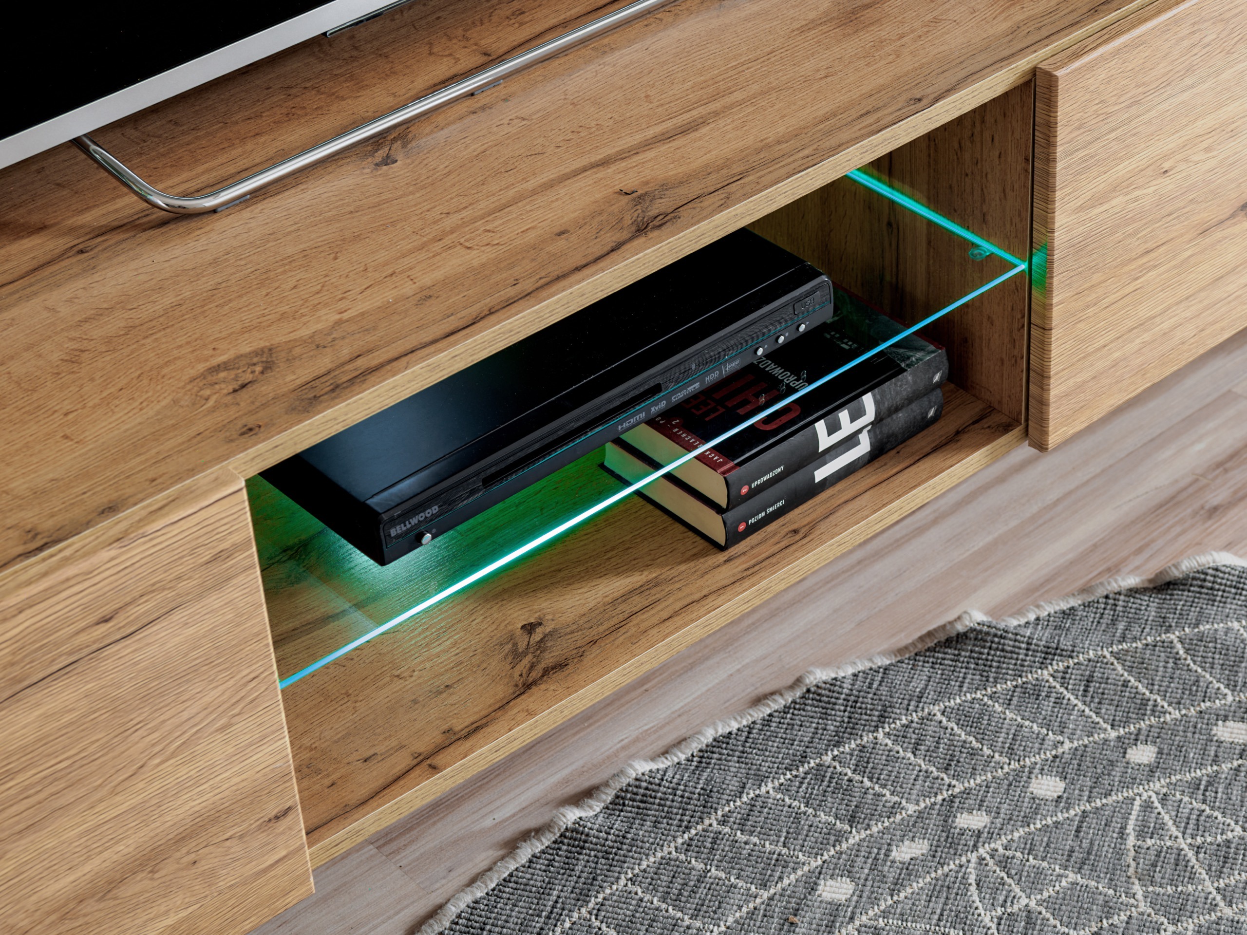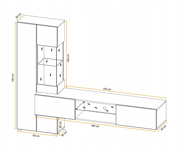 Obývacia stena NERTRY je stelesnením elegantného a funkčného riešenia, ktoré sa dokonale hodí do moderných interiérov. Vďaka jednoduchým líniám a minimalistickému dizajnu je nábytková zostava NERTRY vynikajúcou voľbou pre ľudí, ktorí si cenia štýl a pohodlie v jednom. Jednoduchý, elegantný dizajn robí zostavu NERTRY perfektne sa hodiacou do rôznych štýlov, čím miestnosti dodáva ľahkosť a moderný charakter. Premyslené usporiadanie políc, skriniek a priestoru pre televízor poskytuje pohodlie a umožňuje estetické uloženie predmetov a multimediálnych zariadení. Dekoratívne biele LED osvetlenie zabudované do police vytvára jedinečnú atmosféru. Systém otvárania je push-click.